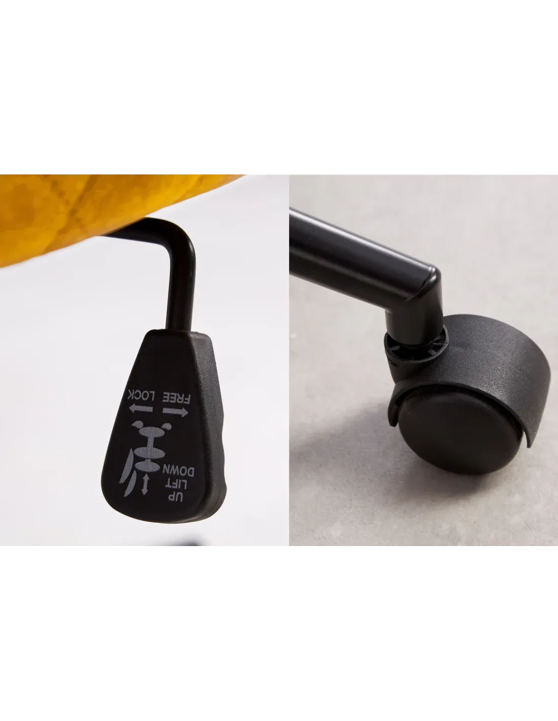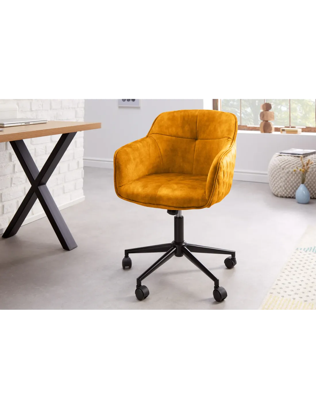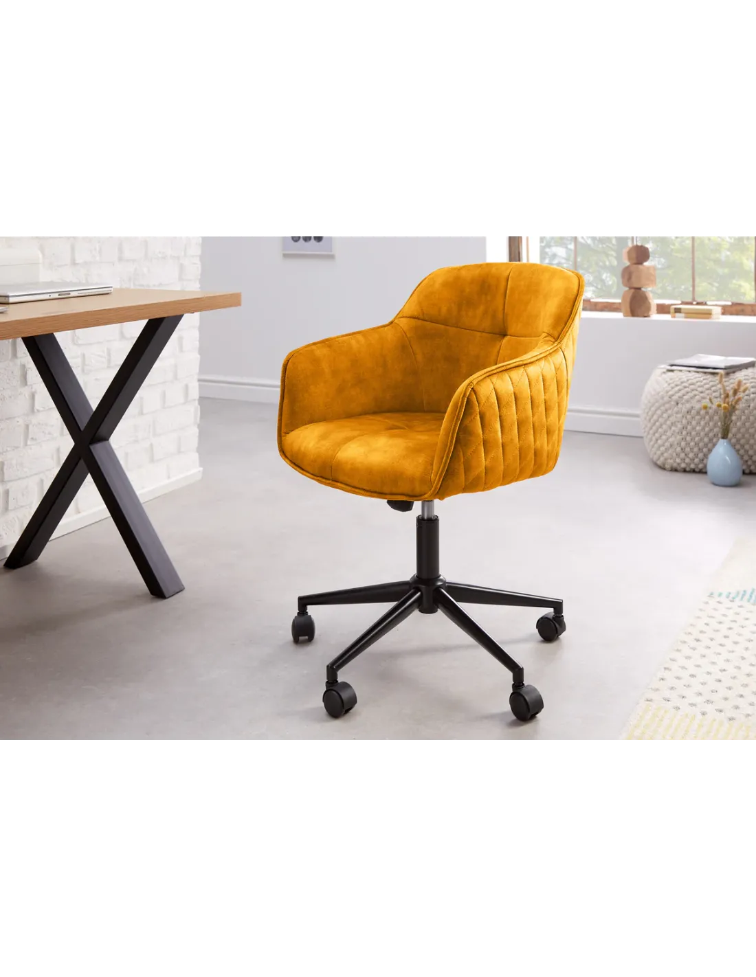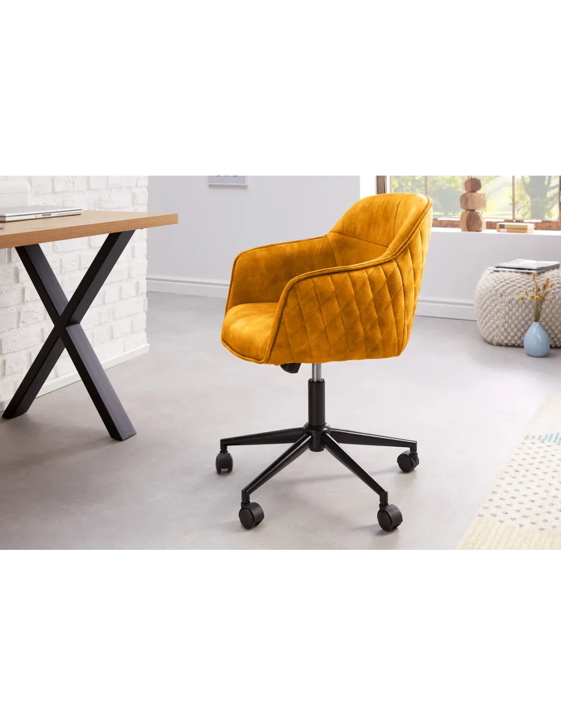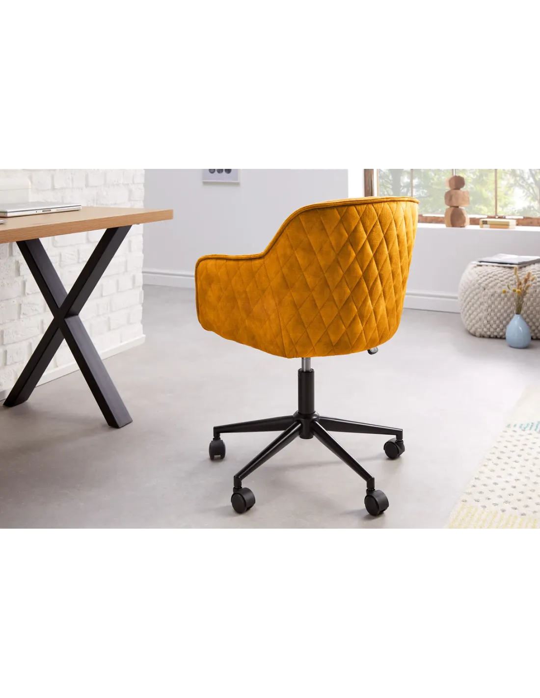 ✨ La chaise de bureau EUPHORIA en velours jaune moutarde combine design affirmé, confort ergonomique et solidité. Elle apportera une touche audacieuse et lumineuse à votre bureau, tout en assurant un confort optimal jour après jour.