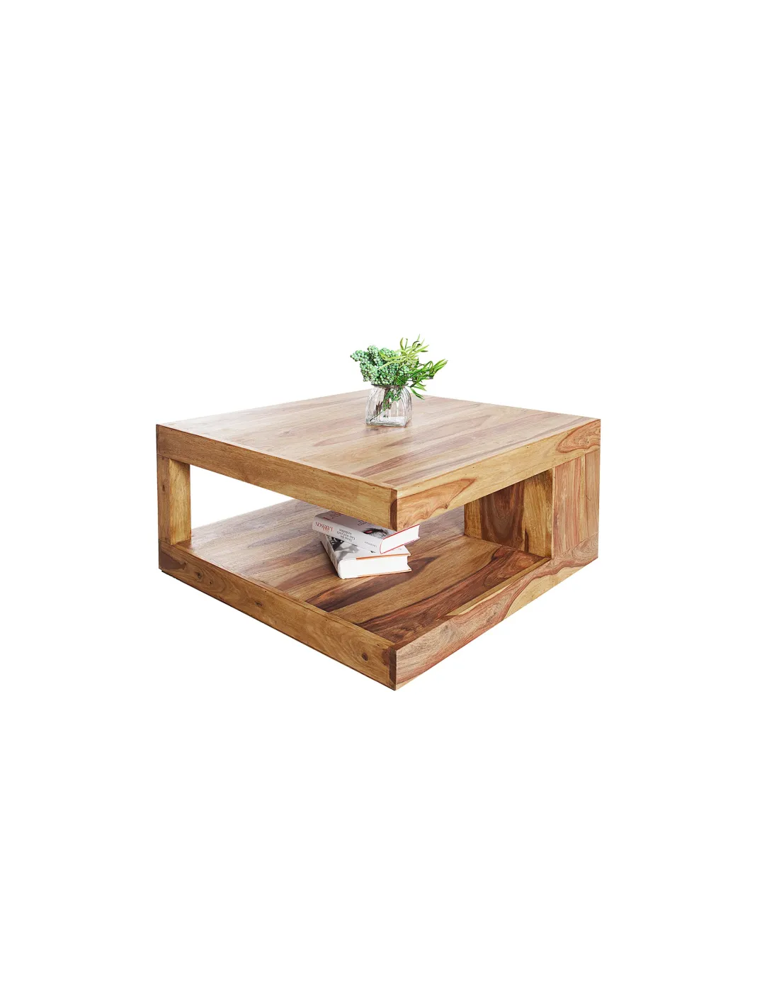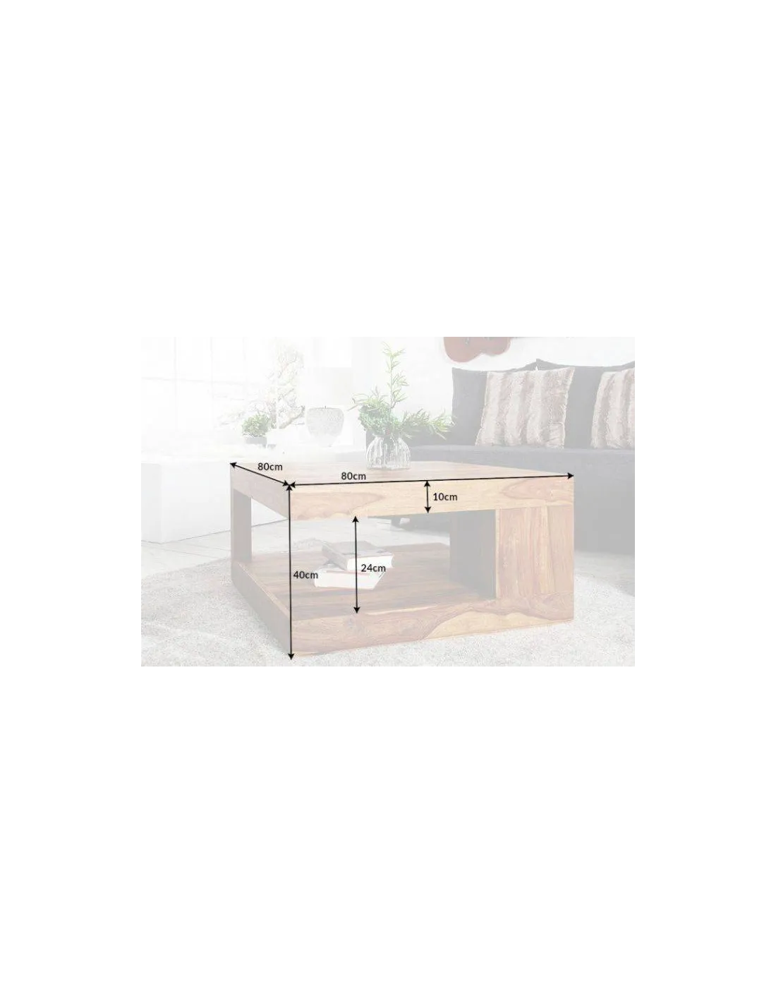 Table Basse Sheesham GIANT L 80x80 cm – Table Basse Bois Massif Naturel pour Salon
