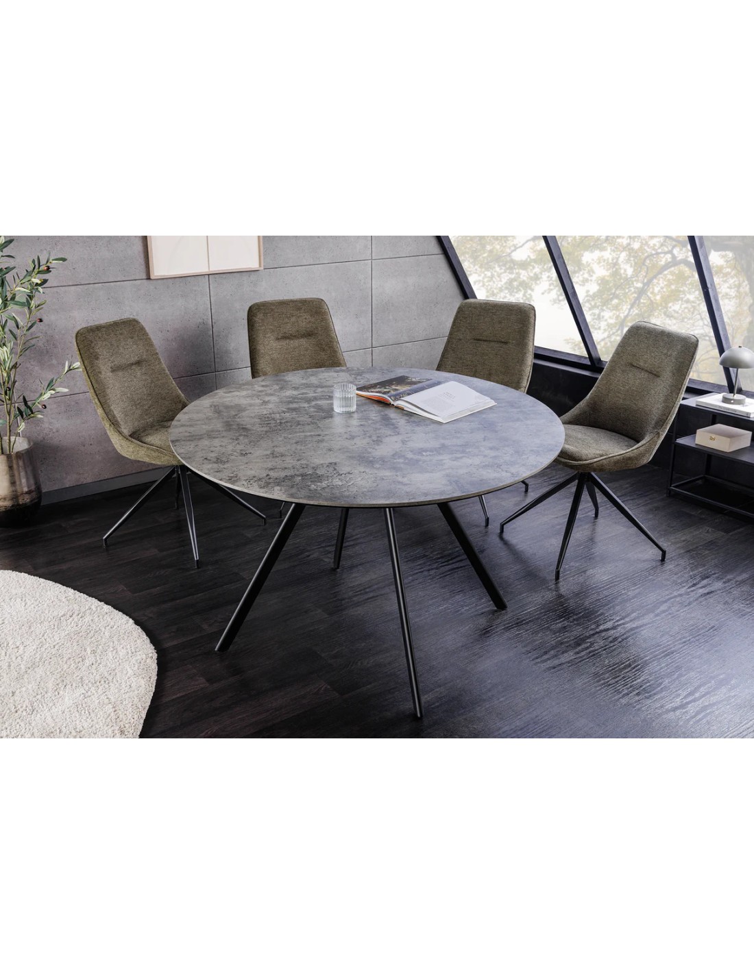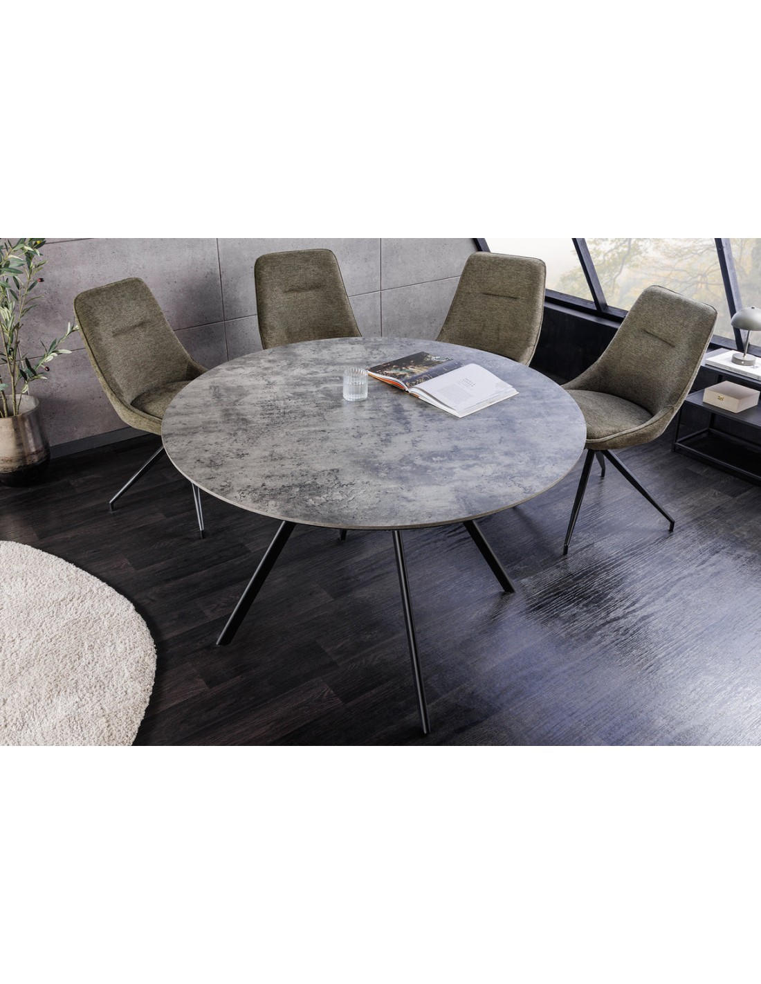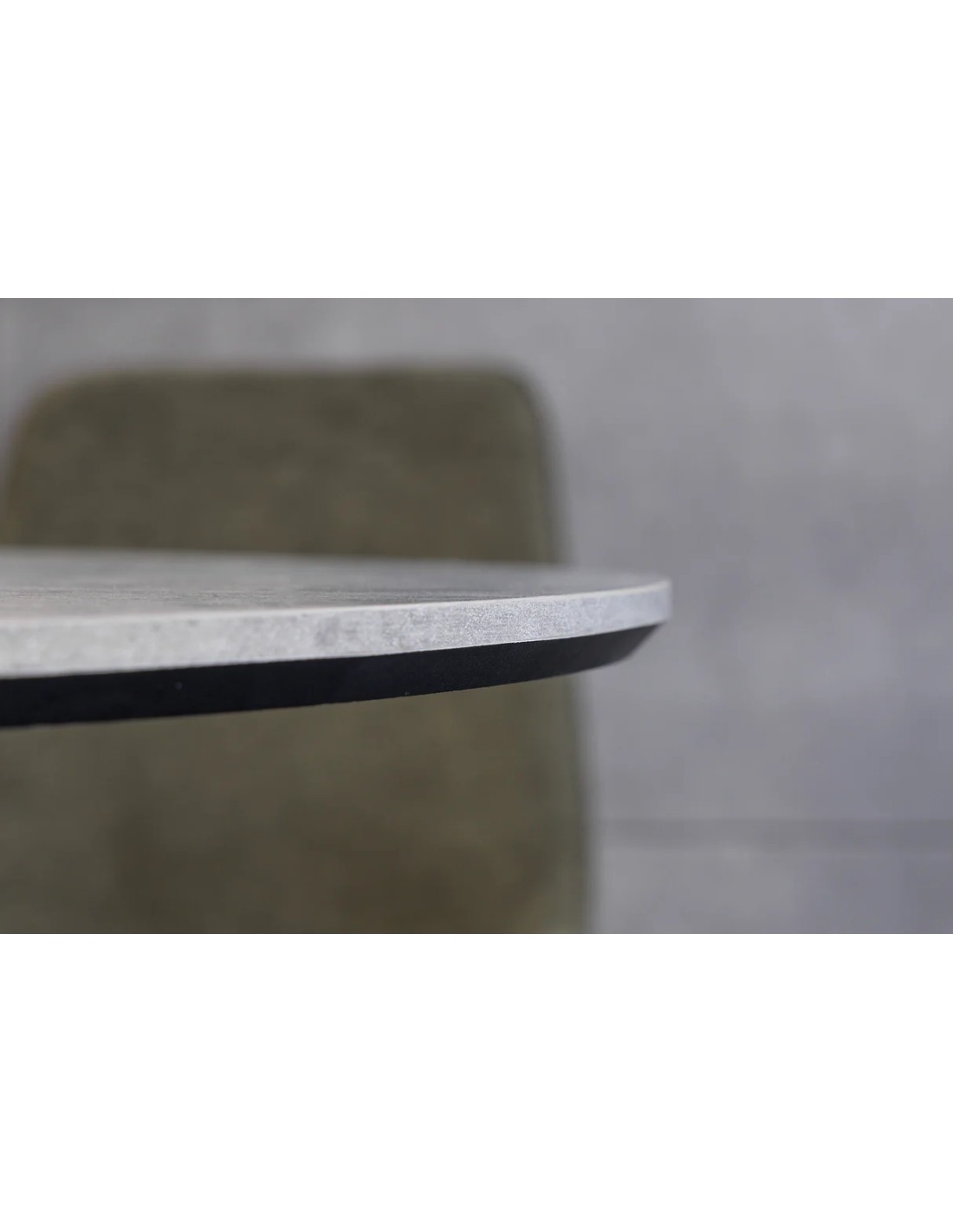 Son plateau en MDF avec revêtement mélaminé imite à la perfection la texture du béton tout en étant résistant et simple à nettoyer : un chiffon humide suffit.