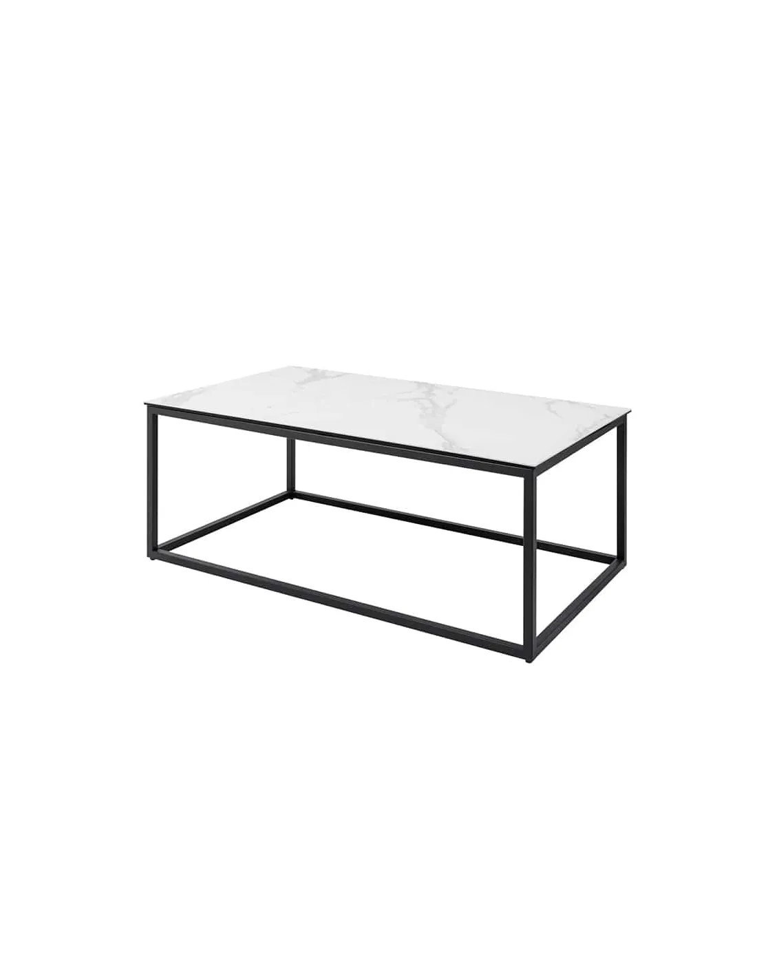 Table basse SYMBIOSE 100 cm en céramique blanche aspect marbre avec plateau en verre trempé