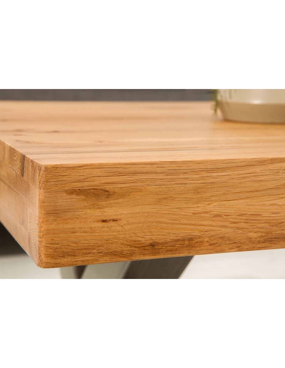 Le piètement en métal noir de la table THOR, avec des pieds de 6 × 6 cm, lui confère une stabilité parfaite et un style industriel affirmé. L’alliance du bois clair et du métal sombre crée un contraste harmonieux qui attire le regard. Une conception pensée pour durer et résister à toutes les utilisations du quotidien.