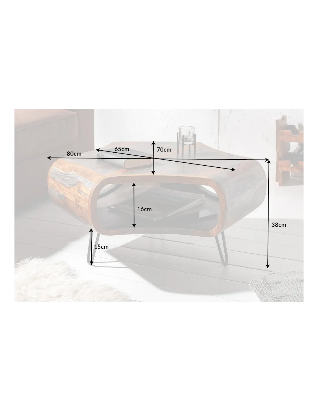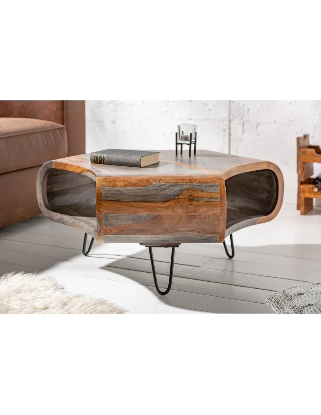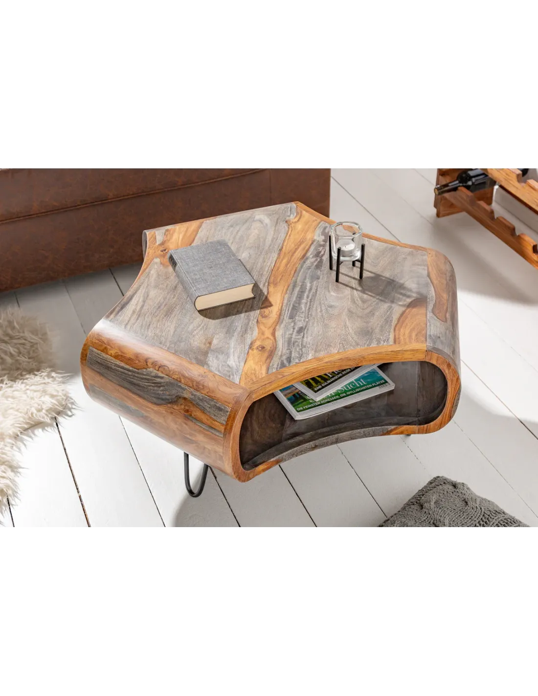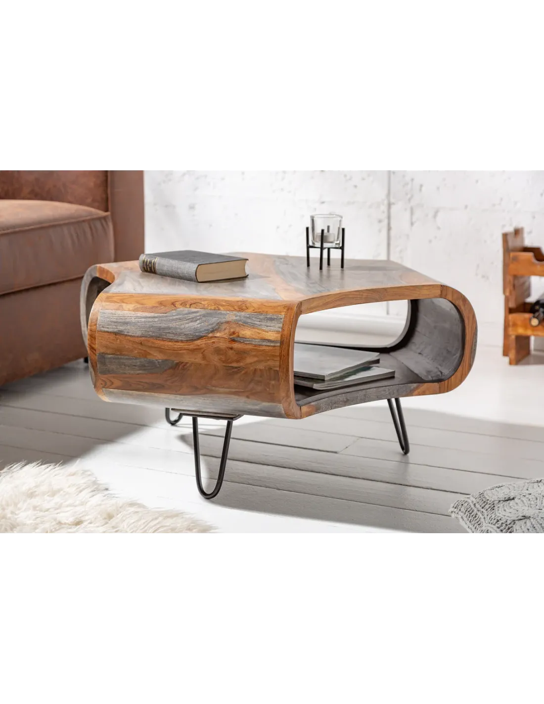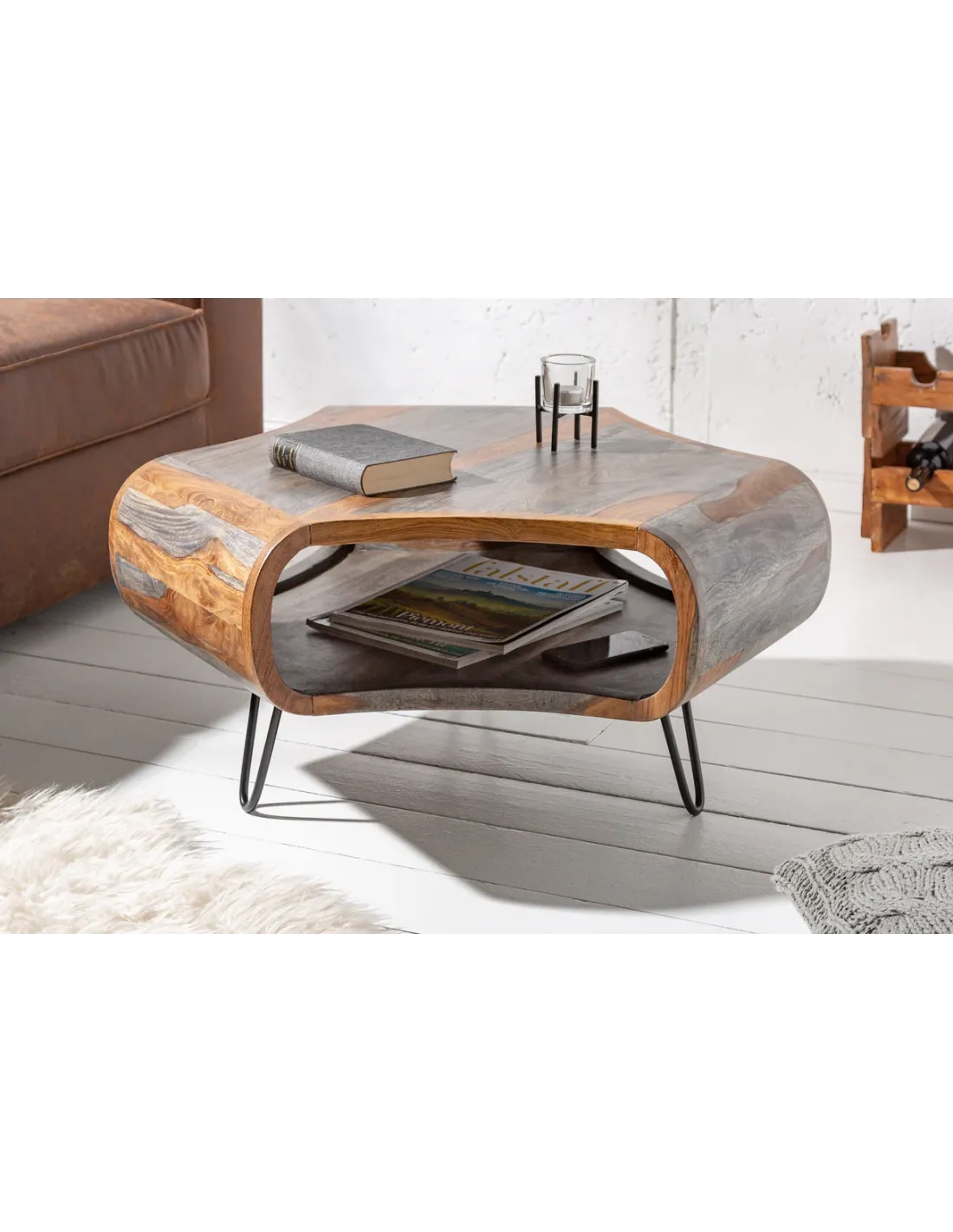 Table basse ORGANIC LIVING 80 cm en bois de sheesham gris