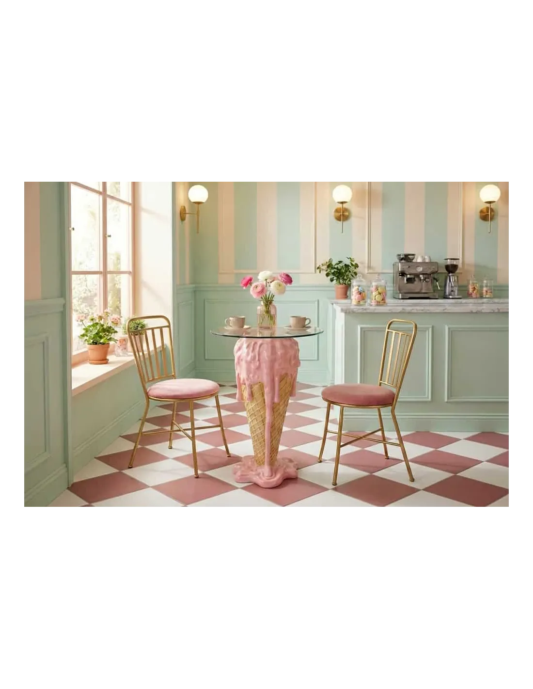La table de bar ICE CREAM puise son inspiration dans l’esthétique douce et gourmande des glaces. Ses formes harmonieuses et sa combinaison de rose tendre et de beige créent une atmosphère chaleureuse, moderne et conviviale.