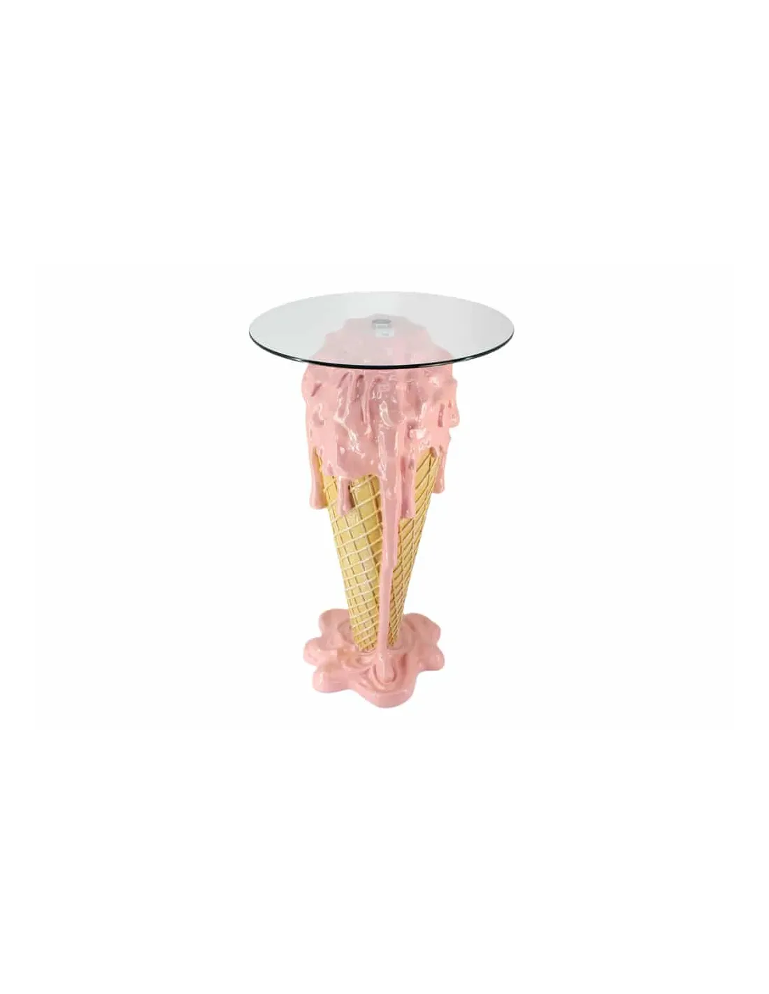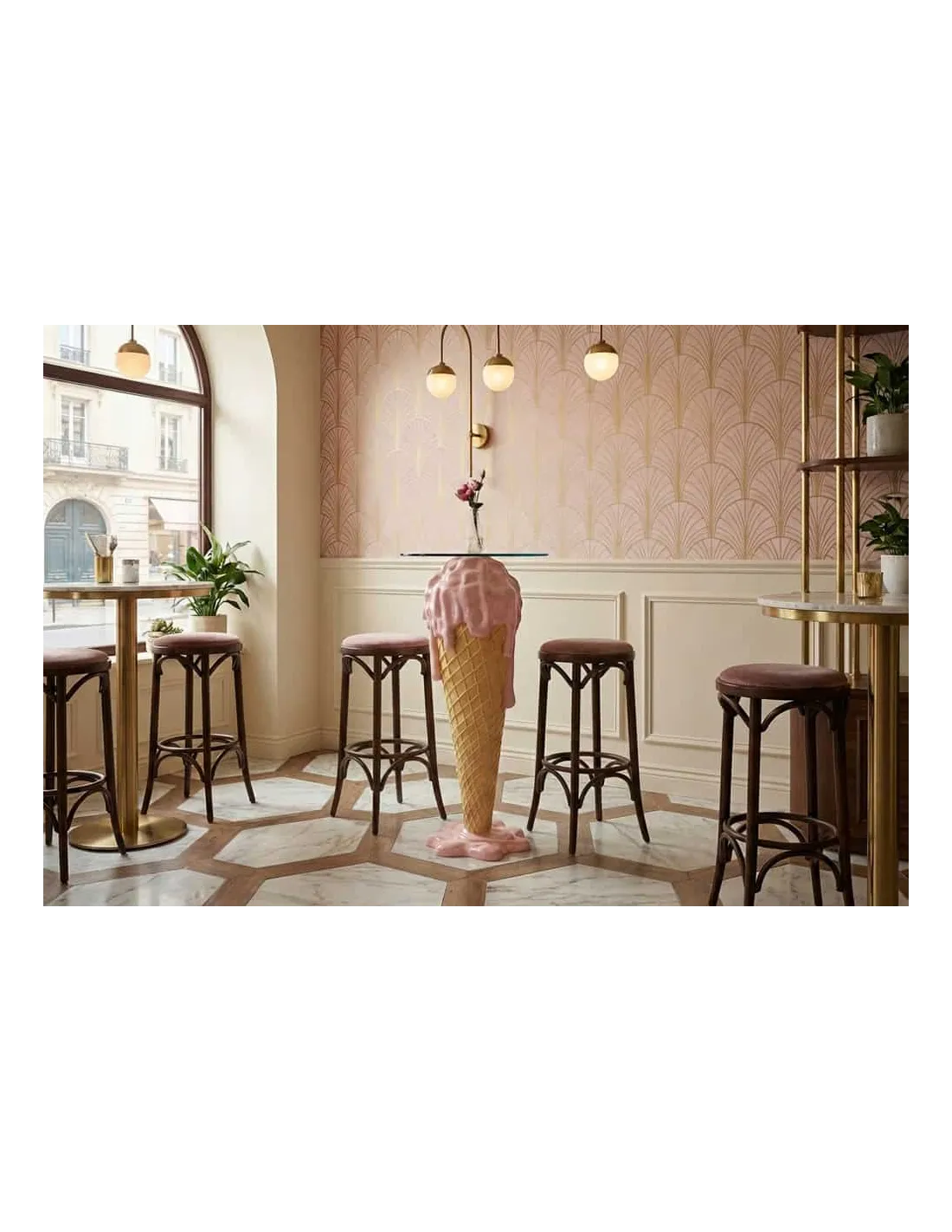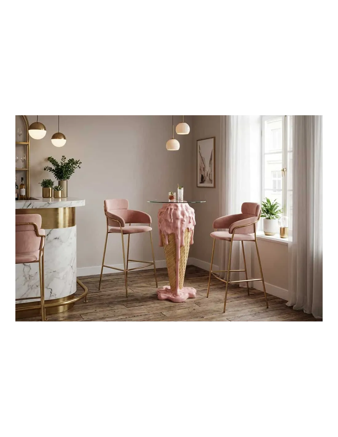 La table de bar ICE CREAM 105 cm s’inspire de l’univers sucré et coloré des glaces pour créer une pièce décorative à forte personnalité. Son design sculptural, sublimé par des tons rose et beige éclatants, apporte une touche de fantaisie élégante et chaleureuse à votre intérieur.