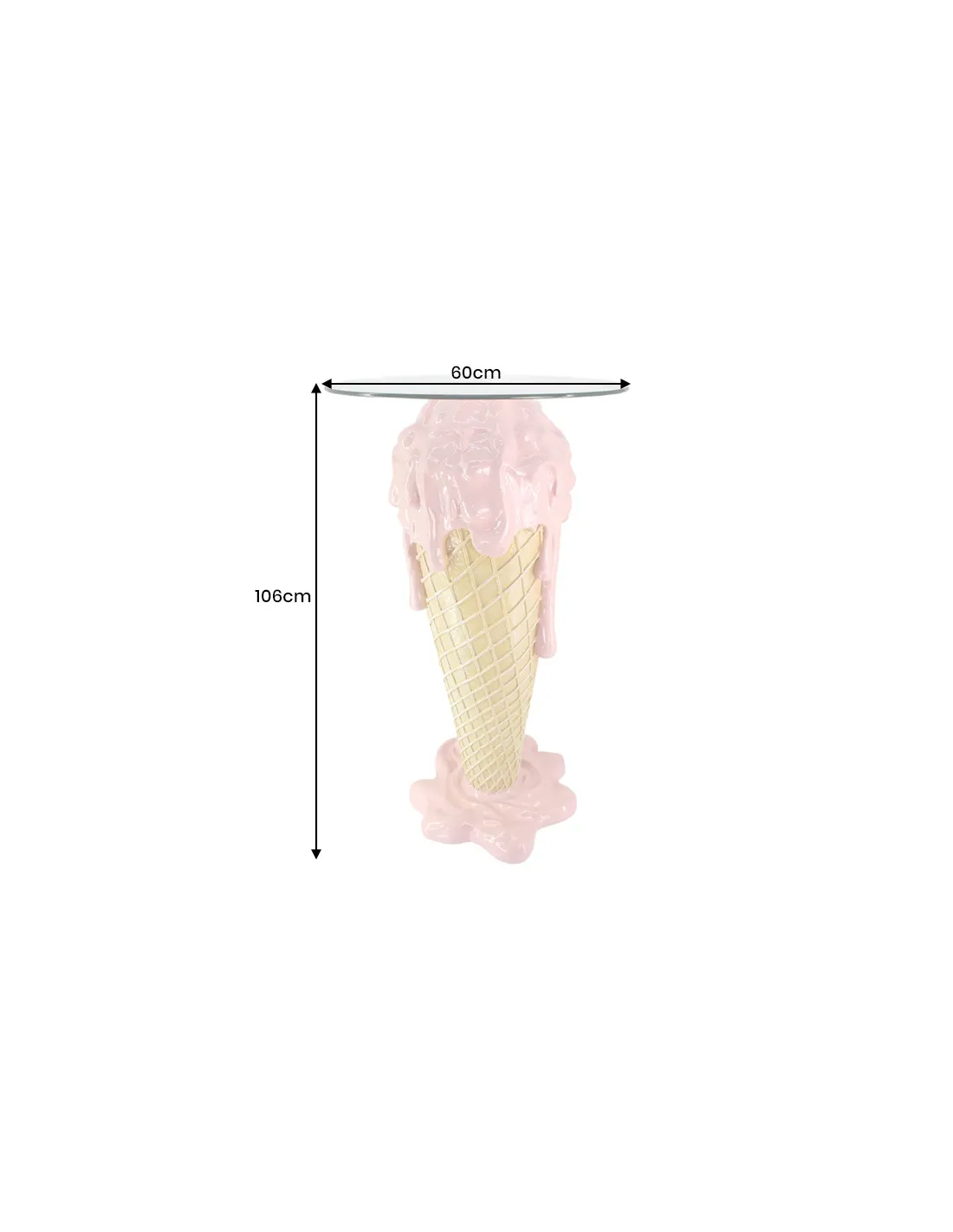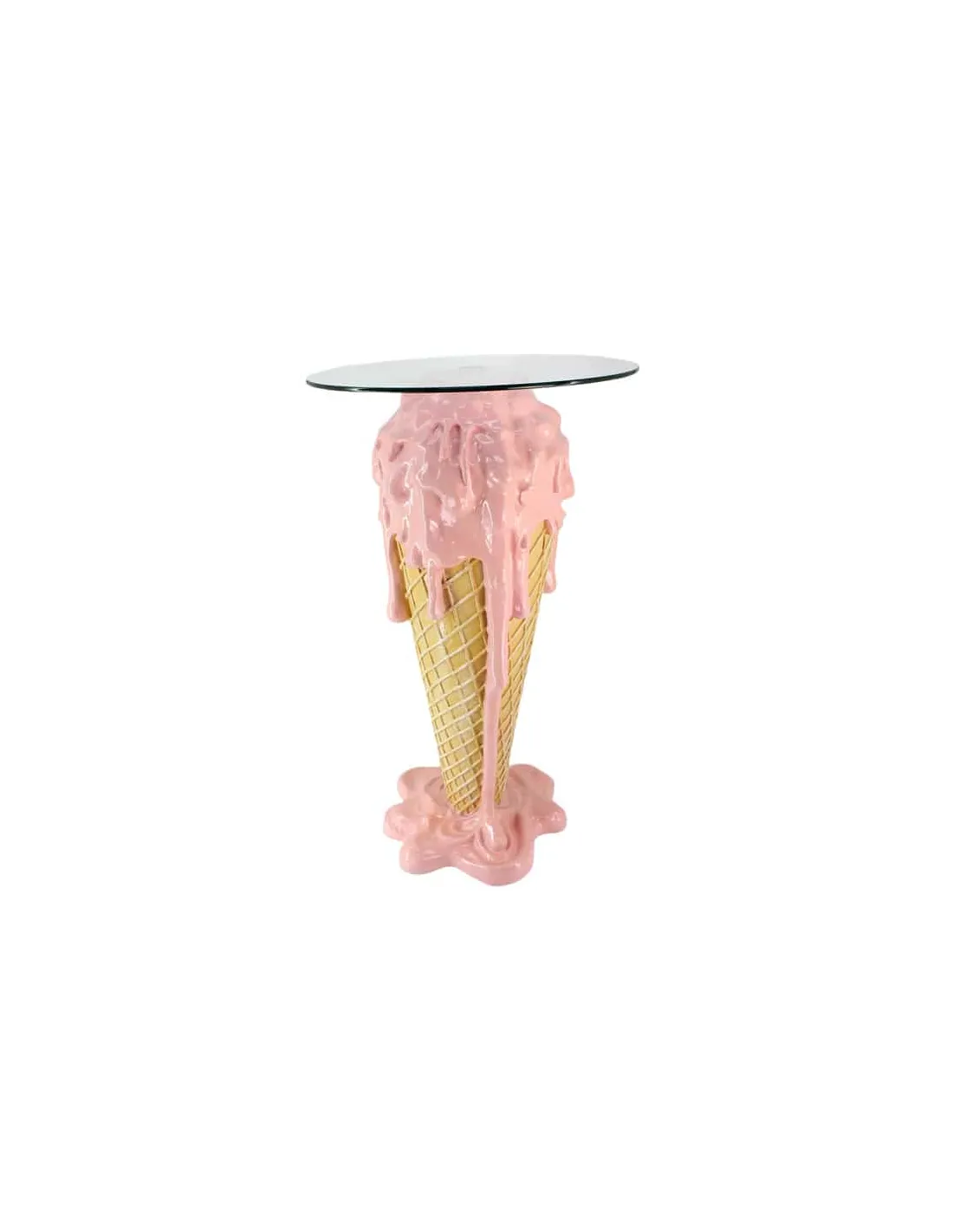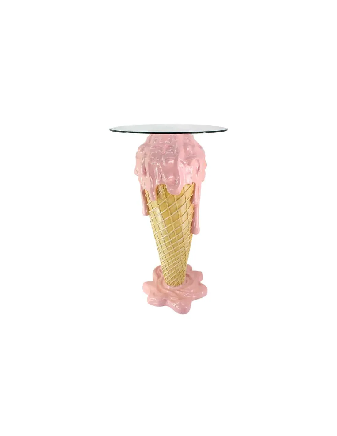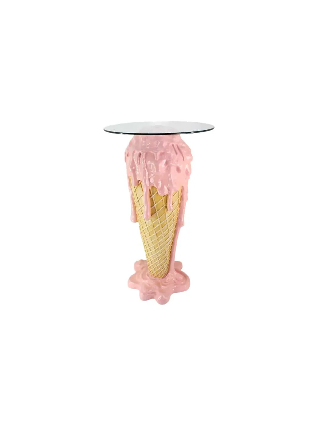 La table de bar ICE CREAM 105 cm s’inspire de l’univers sucré et coloré des glaces pour créer une pièce décorative à forte personnalité. Son design sculptural, sublimé par des tons rose et beige éclatants, apporte une touche de fantaisie élégante et chaleureuse à votre intérieur.