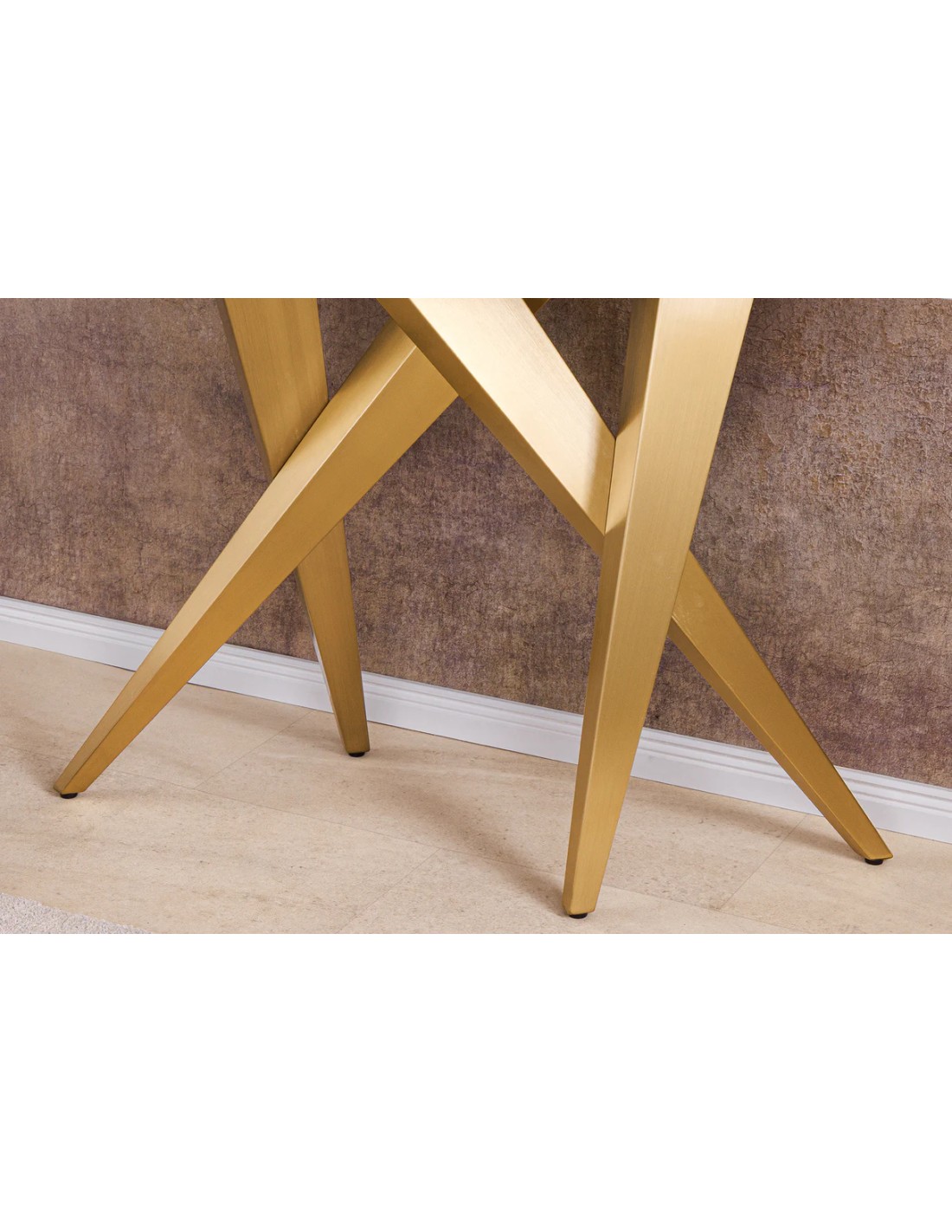 La structure métallique dorée, à la fois fine et robuste, assure une stabilité optimale et une longévité exceptionnelle.