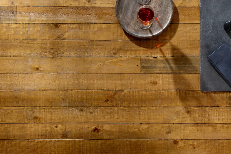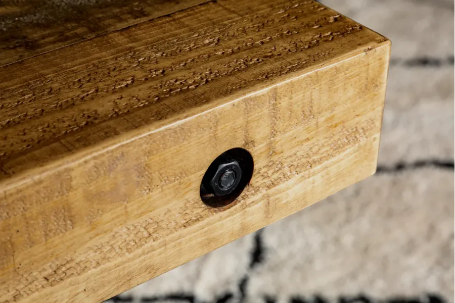 Chaque plateau est fabriqué à partir de bois de pin recyclé, soigneusement sélectionné pour ses nœuds et veinures naturelles qui racontent une histoire. Le vernis brun vintage met en valeur la texture du bois tout en le protégeant, offrant ainsi un aspect à la fois authentique et raffiné. Une pièce de caractère qui s’intègre aussi bien dans un intérieur moderne que rustique.