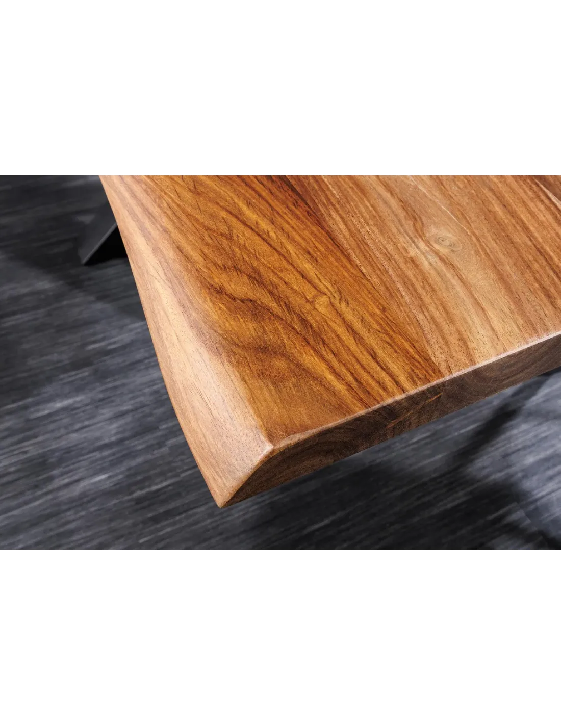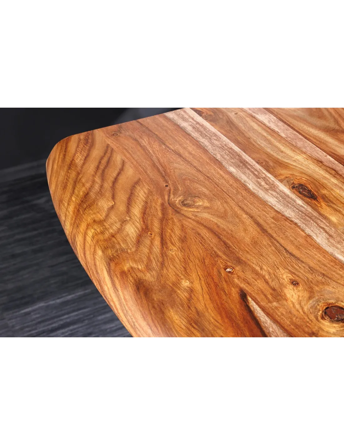 Bois de Sheesham Noble : Un plateau massif aux veinures denses pour une esthétique naturelle puissante.