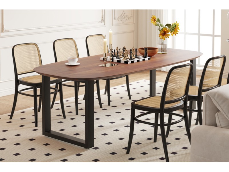 La table Tommy se distingue par sa forme ovale douce et épurée, inspirée du style nordique. Cette silhouette permet une circulation fluide autour de la table et une meilleure convivialité lors des repas.