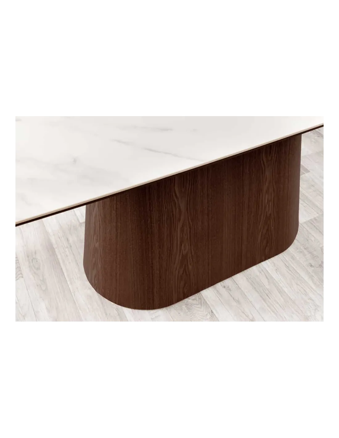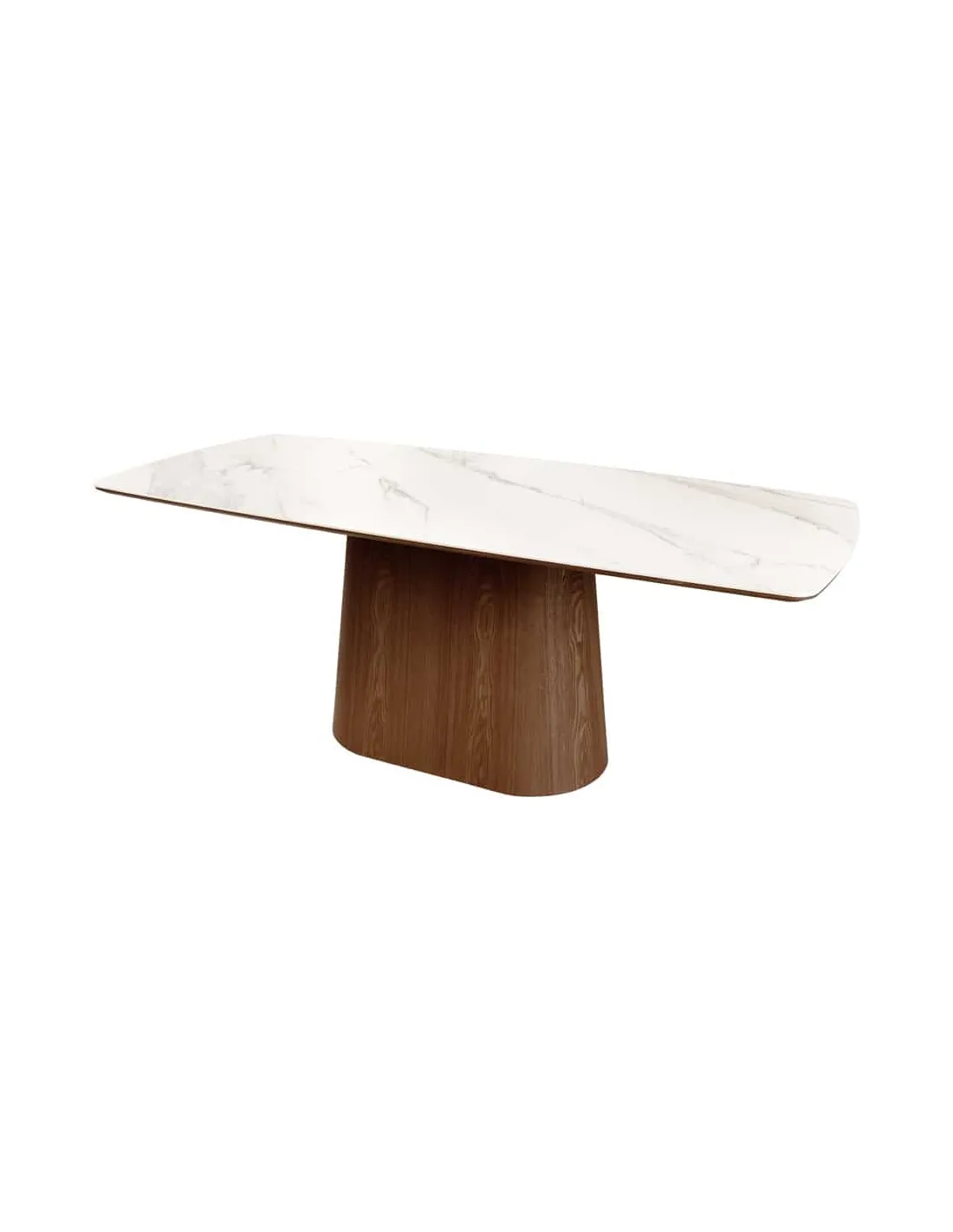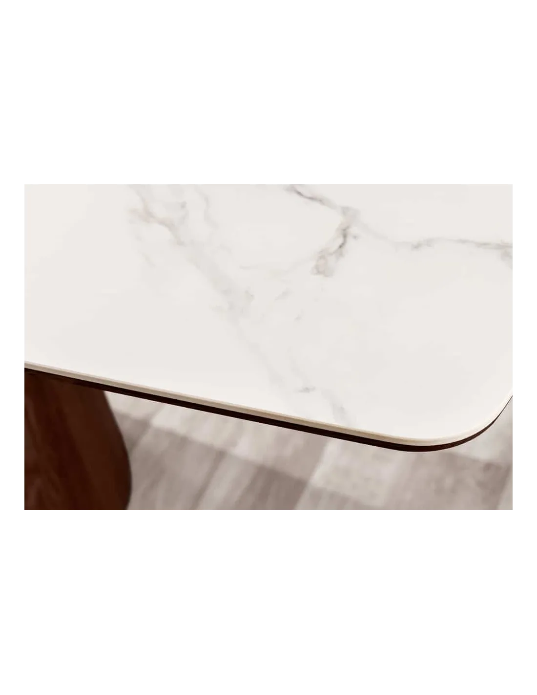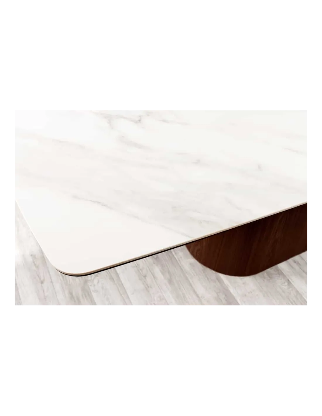 Style moderne et intemporel : mariage du noyer foncé et du marbre blanc, idéal pour les intérieurs contemporains et élégants.
