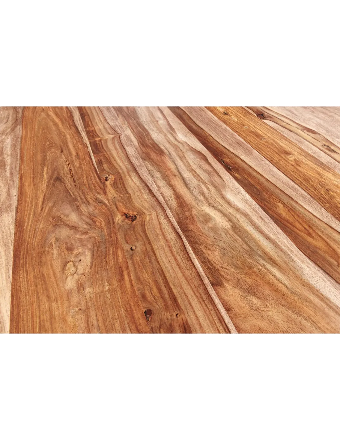 Elle est fabriquée avec un plateau en bois massif de Sesham et une structure métallique thermolaquée noire.