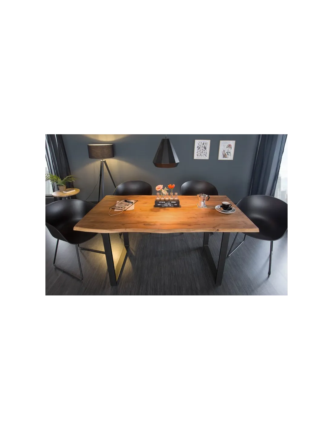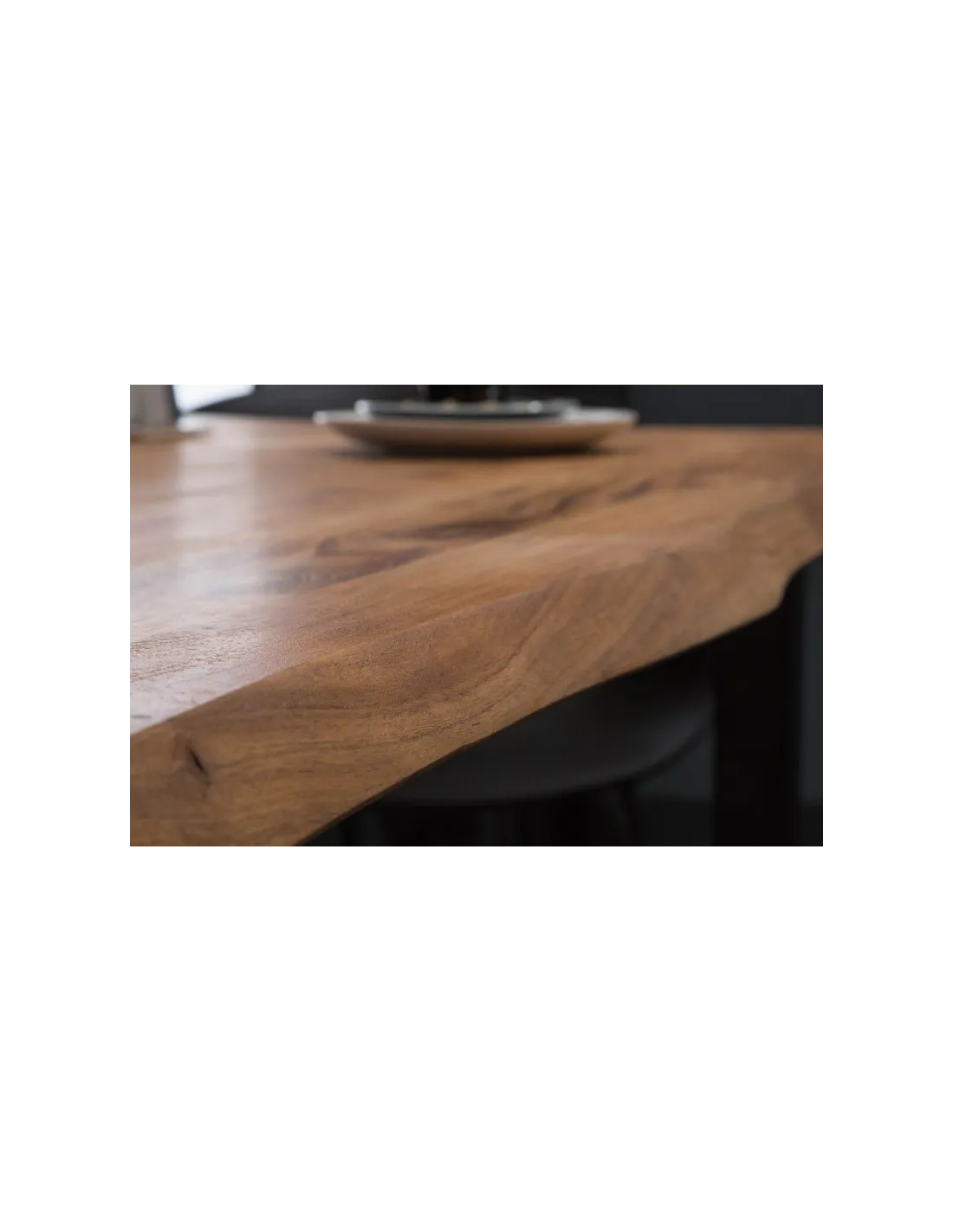 Apportez une touche naturelle et authentique à votre salle à manger avec cette table à manger tronc d'arbre en bois massif d'acacia sauvage. Son plateau de 26 mm d'épaisseur avec bord d'arbre naturel met en valeur les veines et les nuances uniques du bois. Grâce à son cadre en acier noir thermolaqué au style industriel, cette table tronc d'arbre s'intègre parfaitement dans un intérieur moderne, industriel ou naturel. Elle est idéale comme table à manger tronc d'arbre pour partager des repas conviviaux en famille ou entre amis.