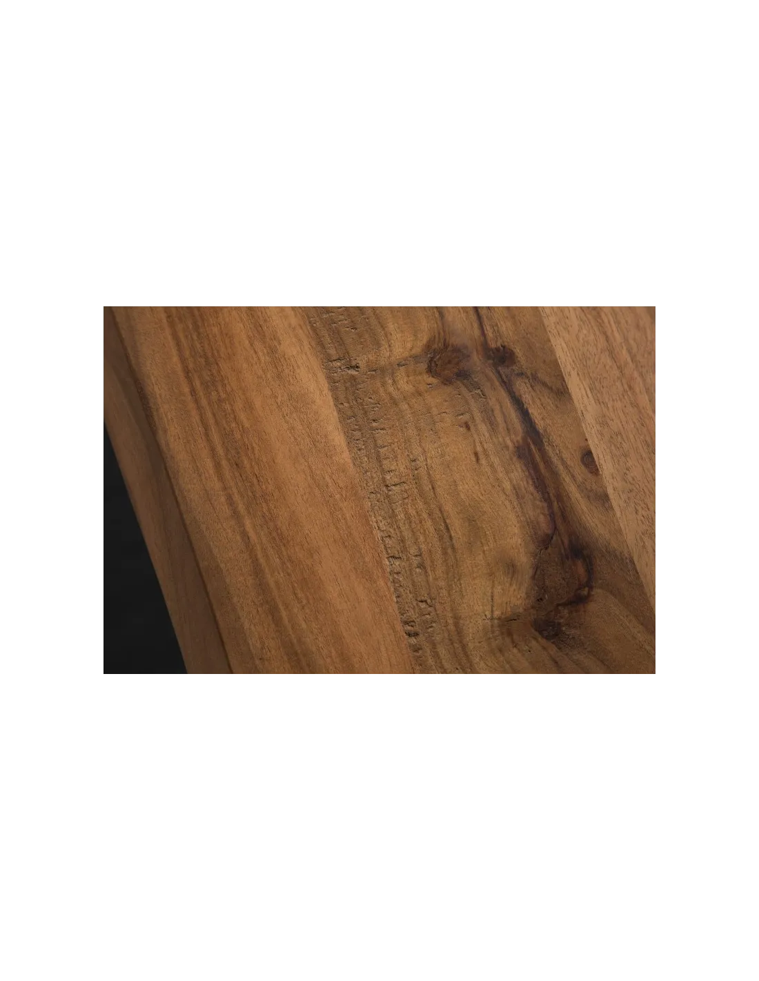 Elle est fabriquée en bois massif d'acacia sauvage avec un cadre en acier thermolaqué noir.