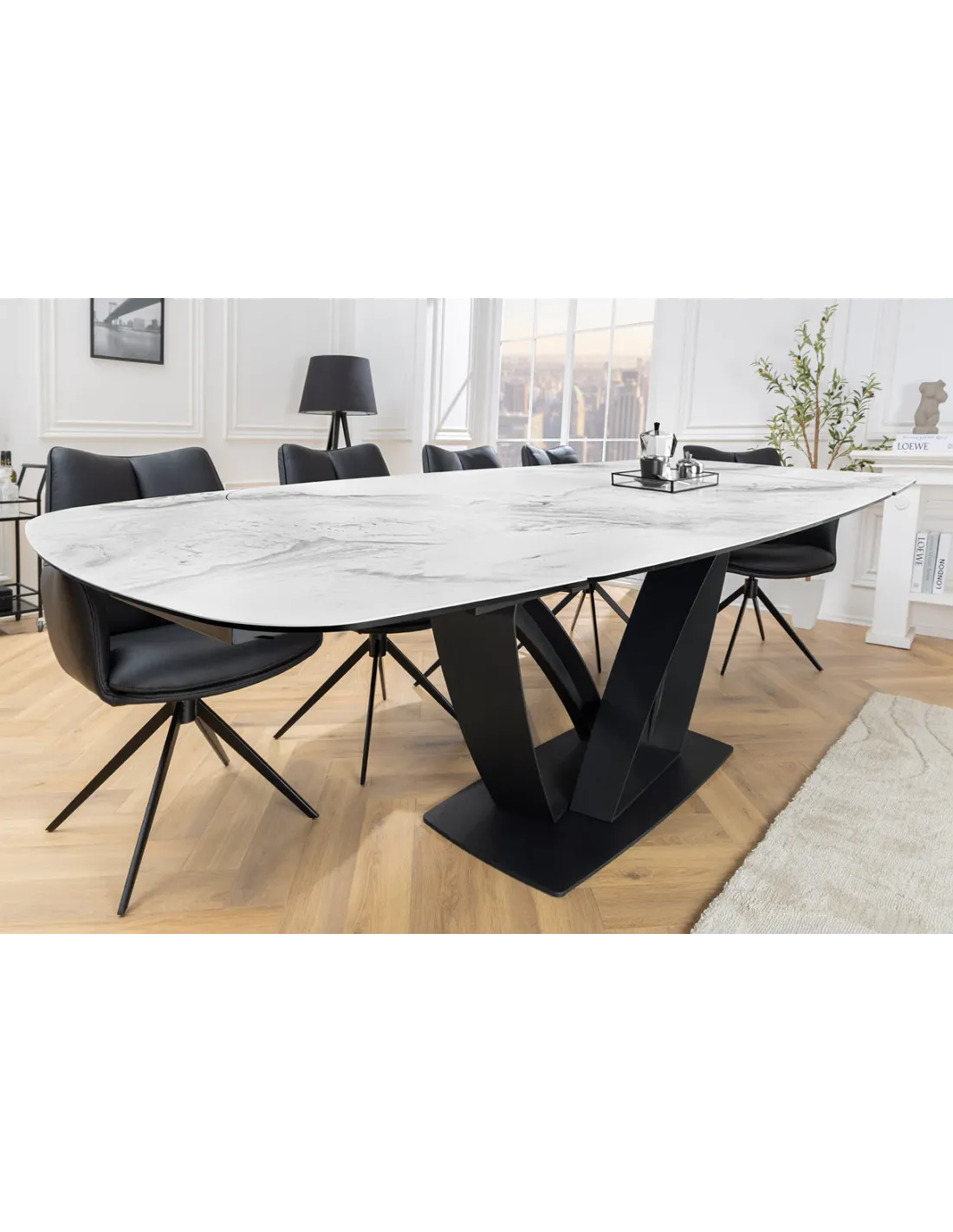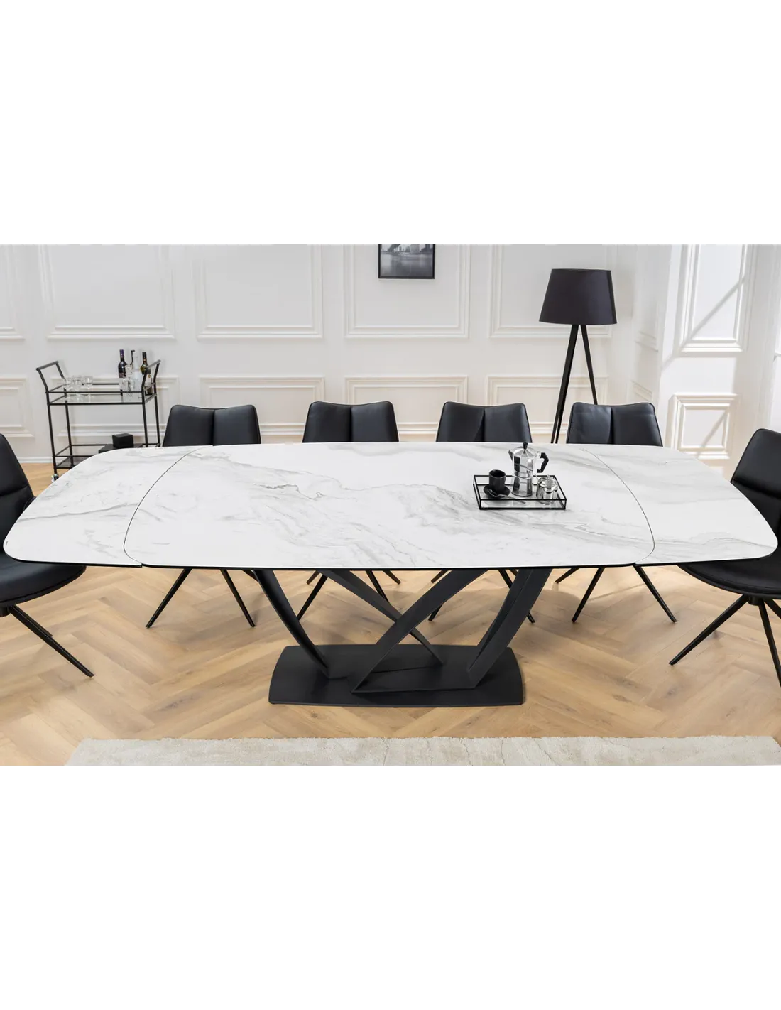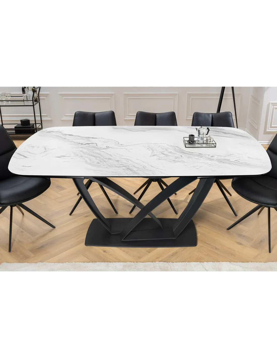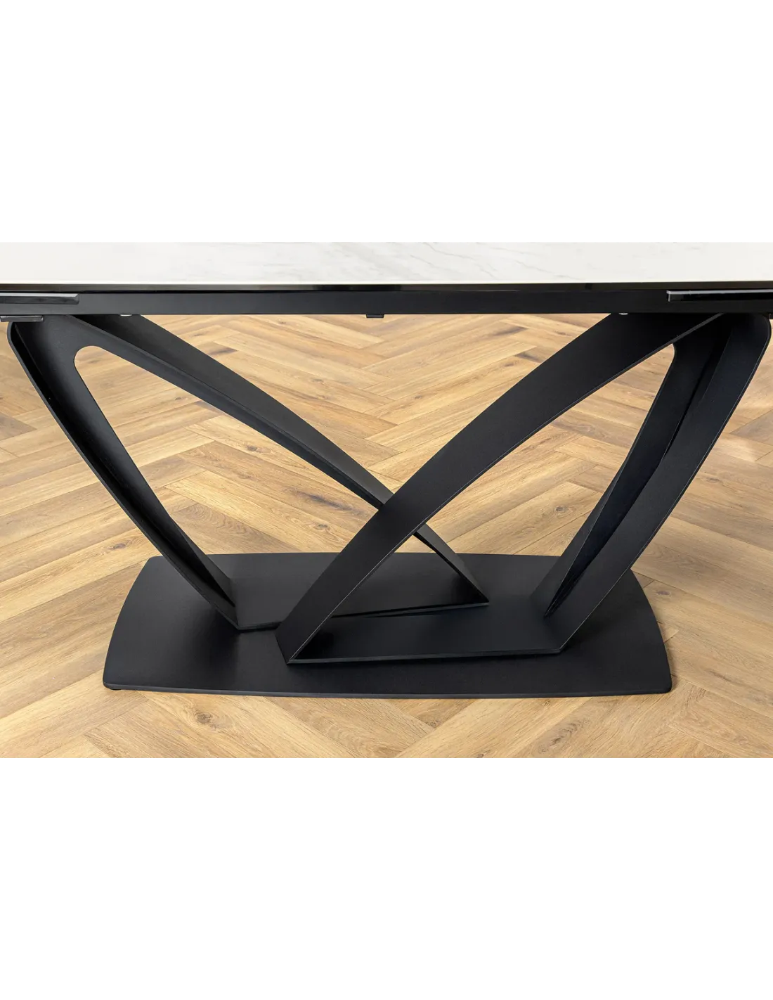 Piétement papillon en métal noir : design contemporain et grande stabilité.