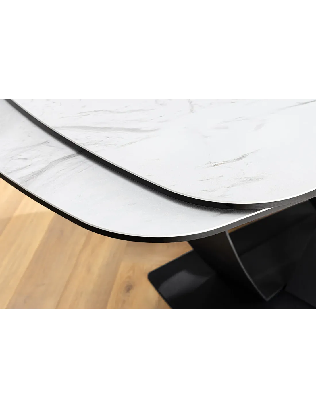Plateau en céramique et verre trempé : résistant, facile à entretenir et élégant.