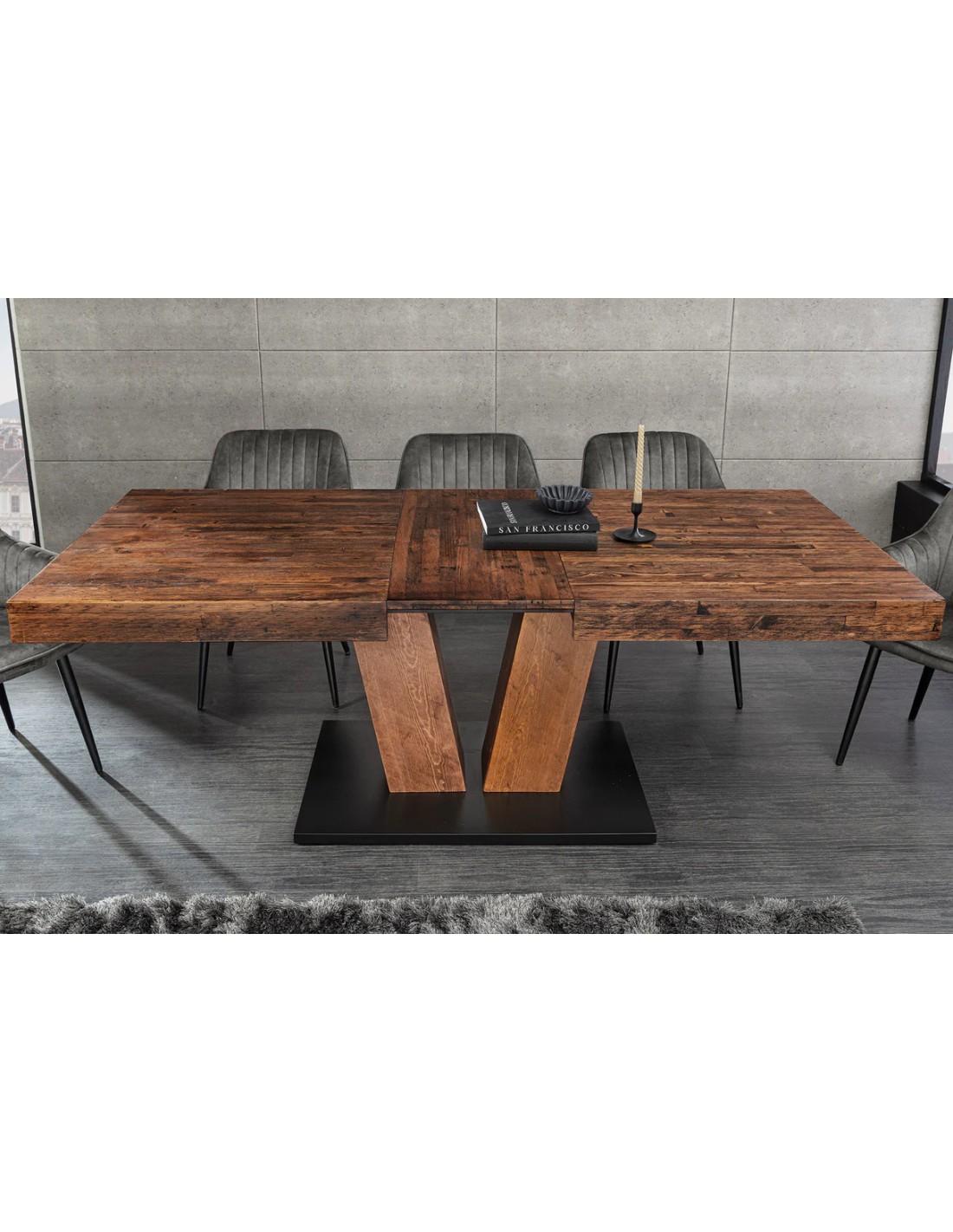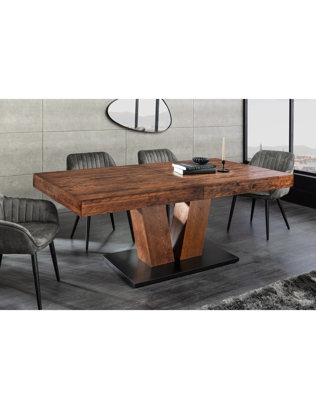 La table RANCHO 160–200 cm allie chaleur du bois et modernité du métal dans un design pratique et accueillant.