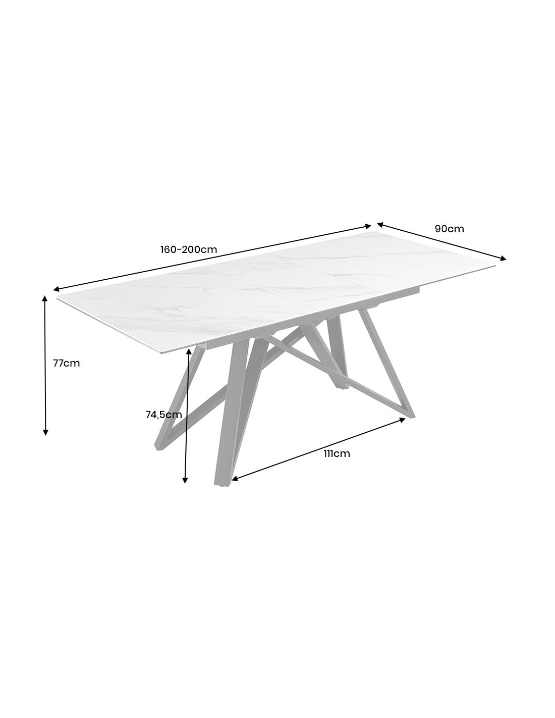 Taille standard : 160 cm, extensible jusqu’à 200 cm