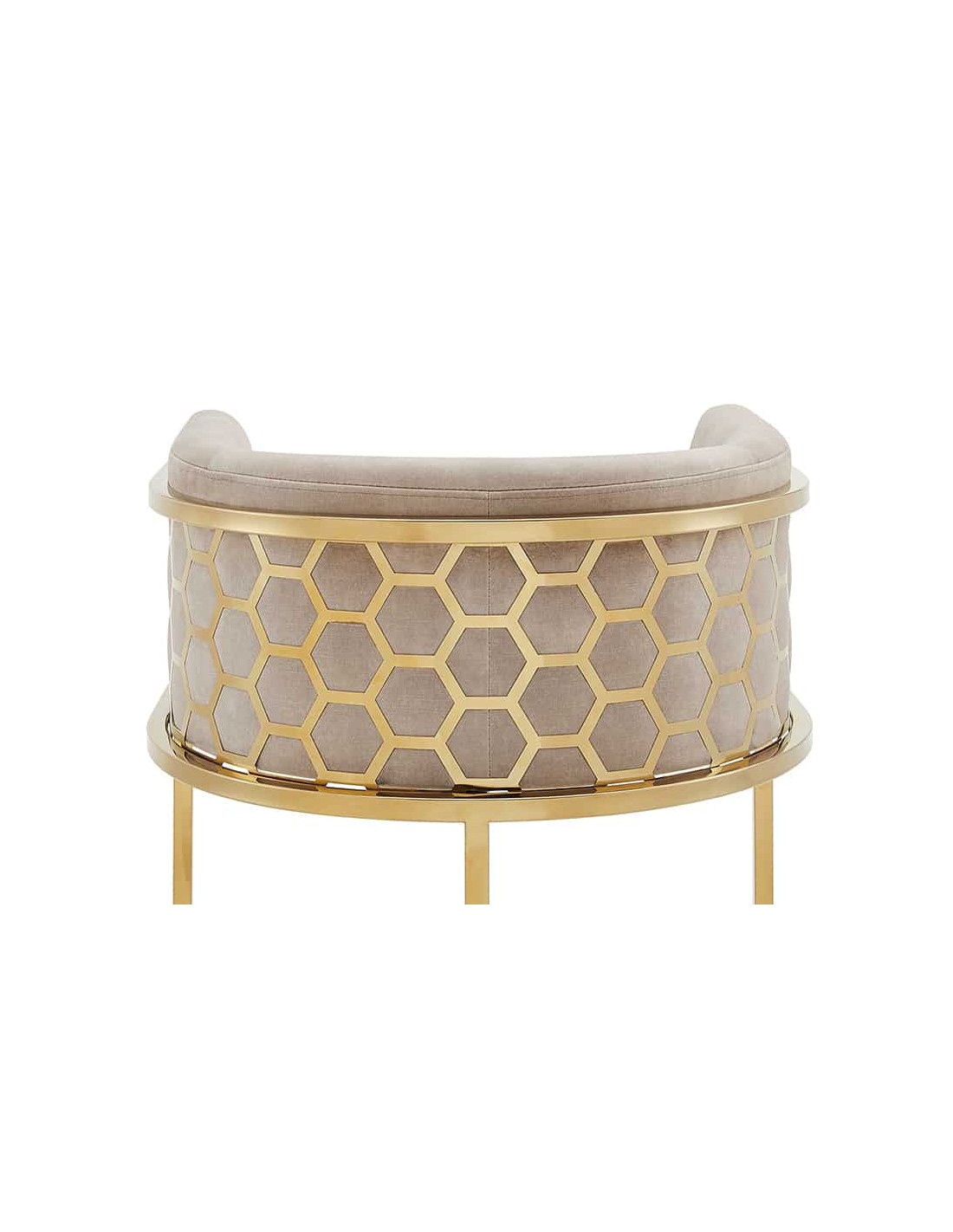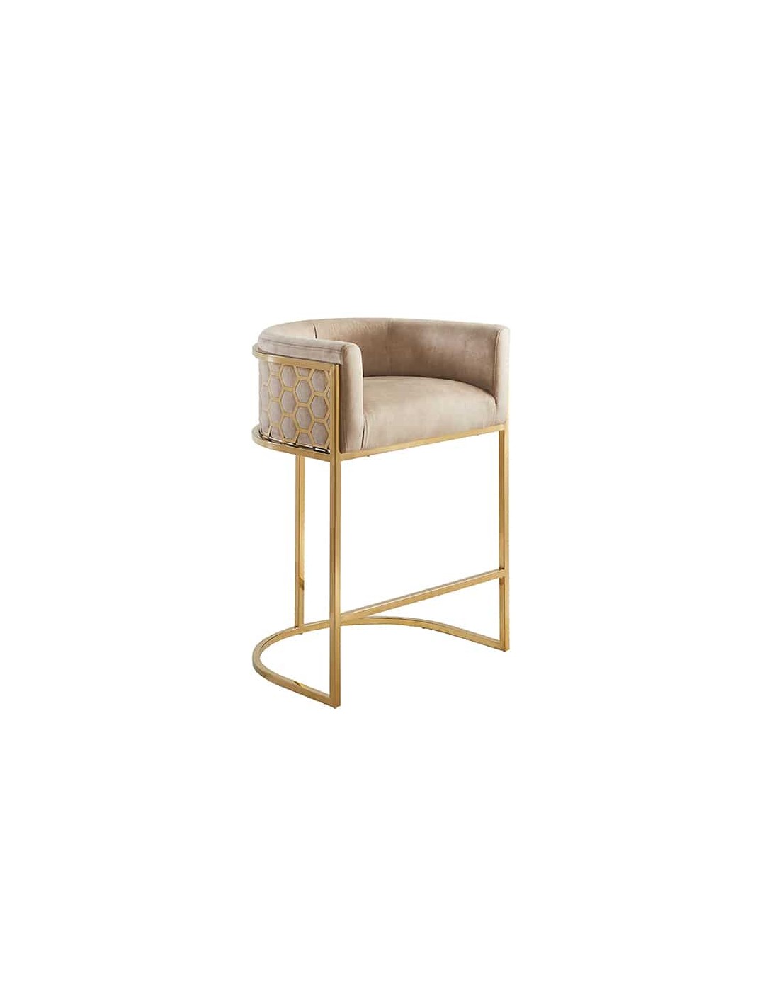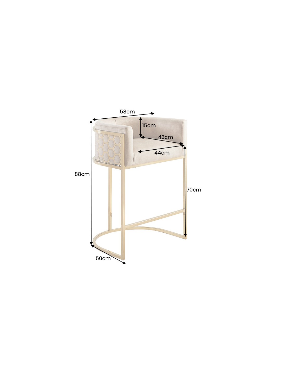 Son velours beige clair apporte douceur et sérénité à votre espace, tandis que la finition dorée brillante de sa structure souligne une allure glamour et sophistiquée.