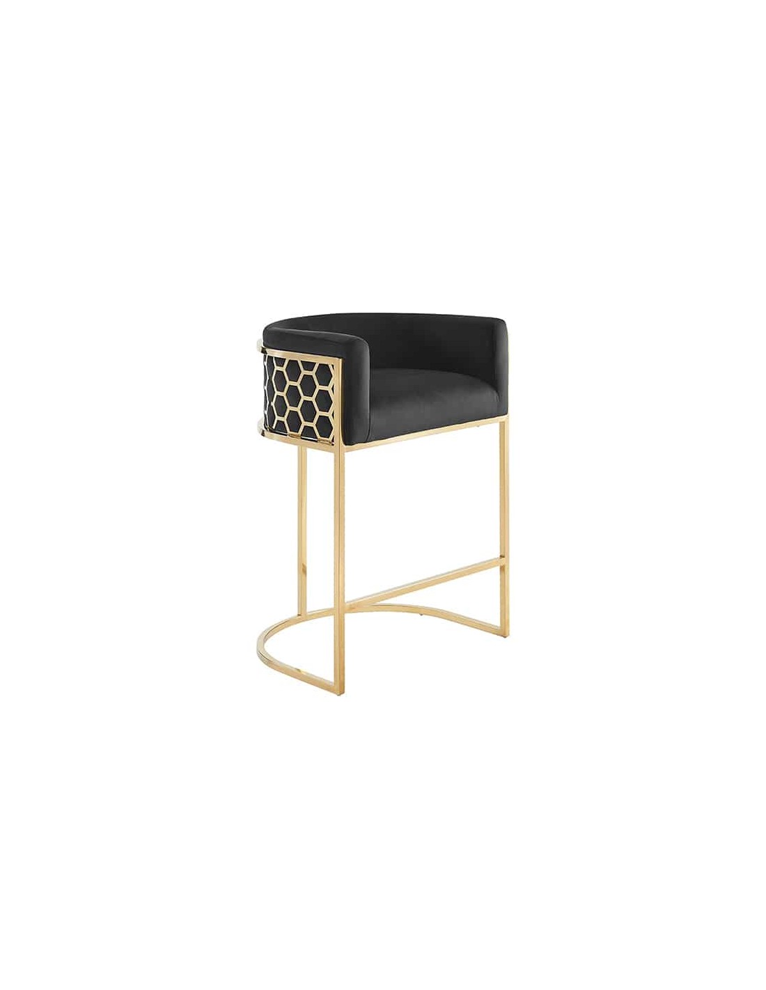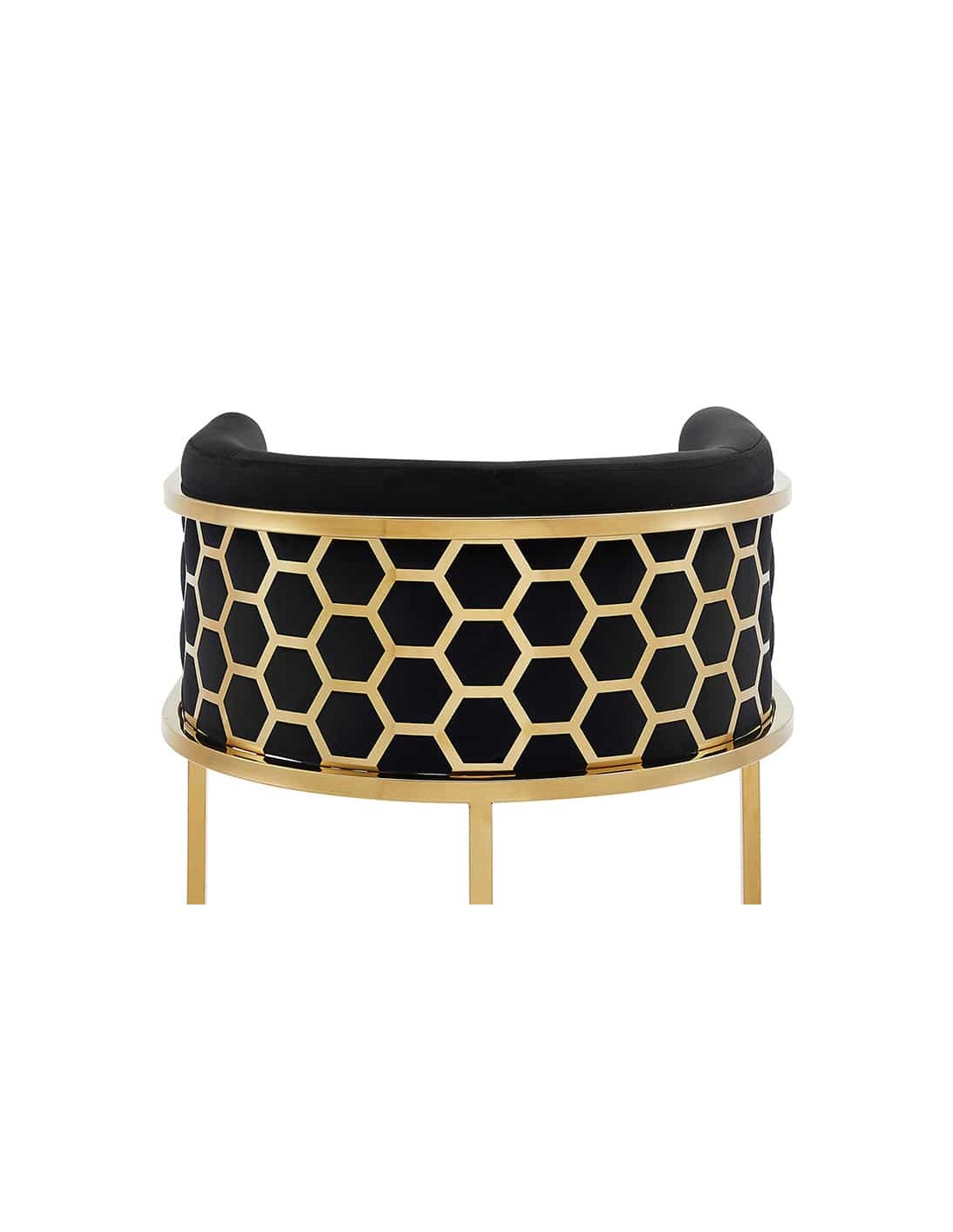 Le velours noir profond apporte chaleur et élégance, tandis que le piètement doré brillant illumine la pièce avec une touche d’or subtile et raffinée.